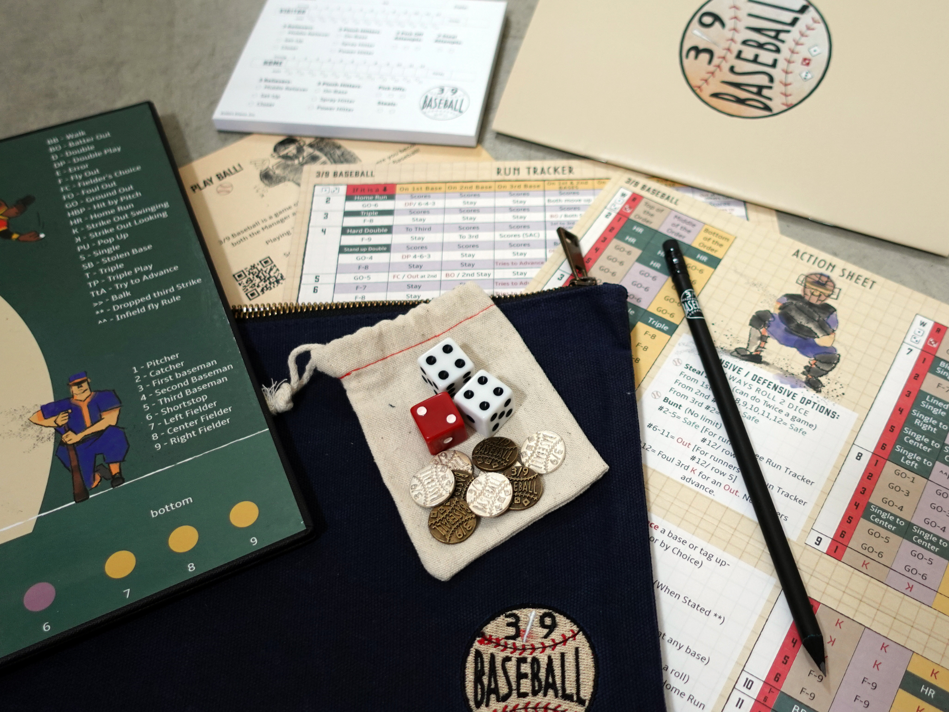 3/9 Baseball uses the probability of a 3-dice roll for nearly limitless game action, situations, and possibilities. Design a season and compete with friends or play a solo exhibition game—it's up to you!